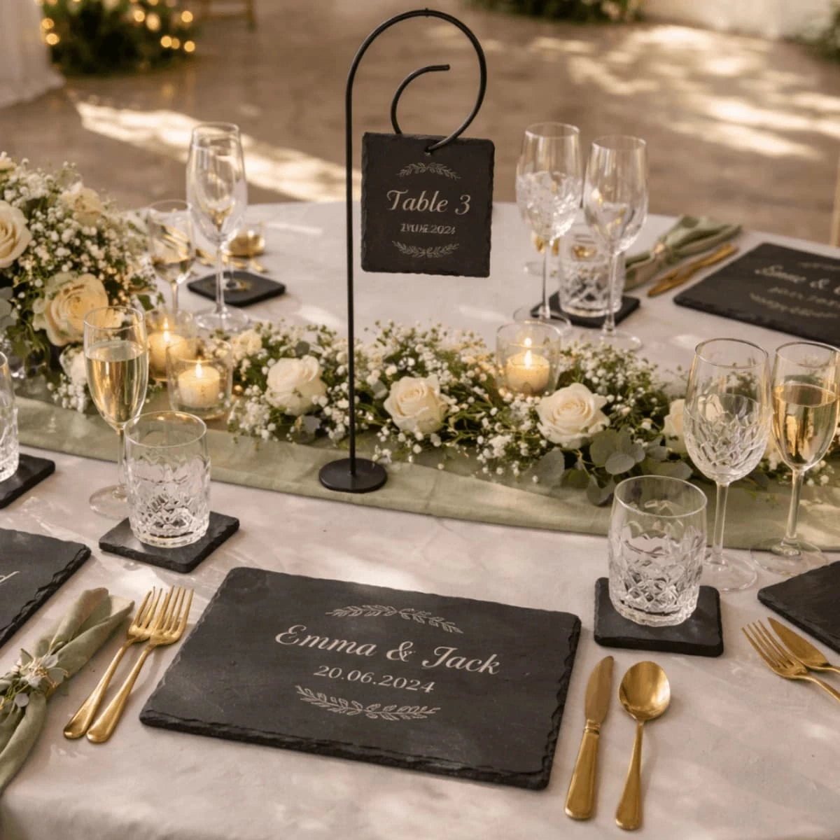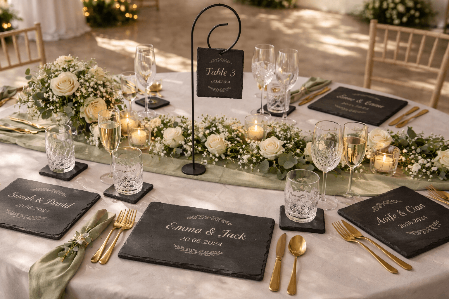 Personalised Slate Wedding Table Bundle – Placemats & Coasters Set (Ireland)