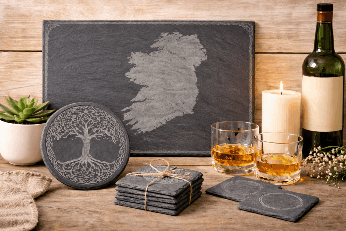A meaningful Irish gift combines personalisation with heritage, such as engraved slate plaques or Irish map designs.