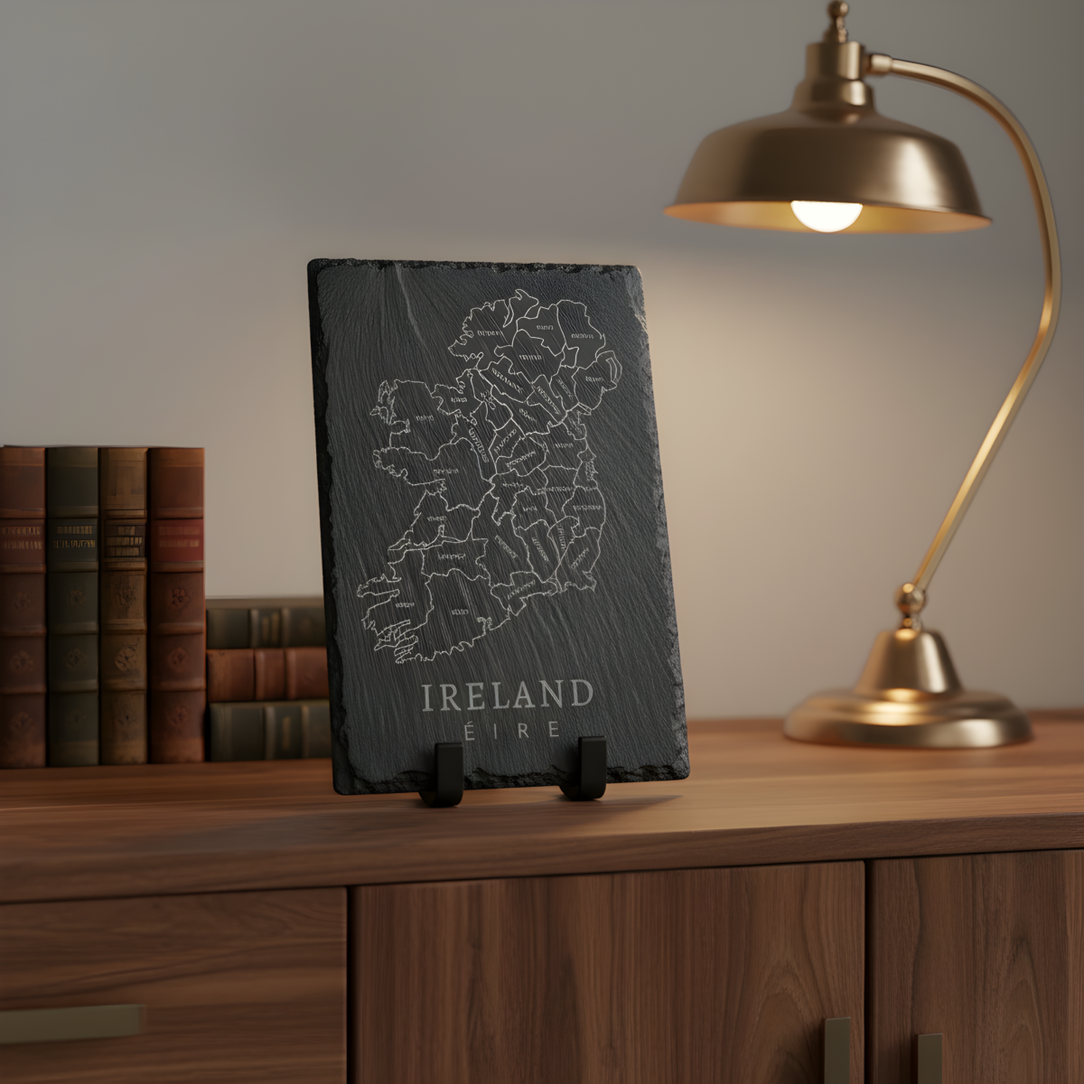 The natural slate surface gives the engraving depth and character, making it feel like a true piece of Ireland.