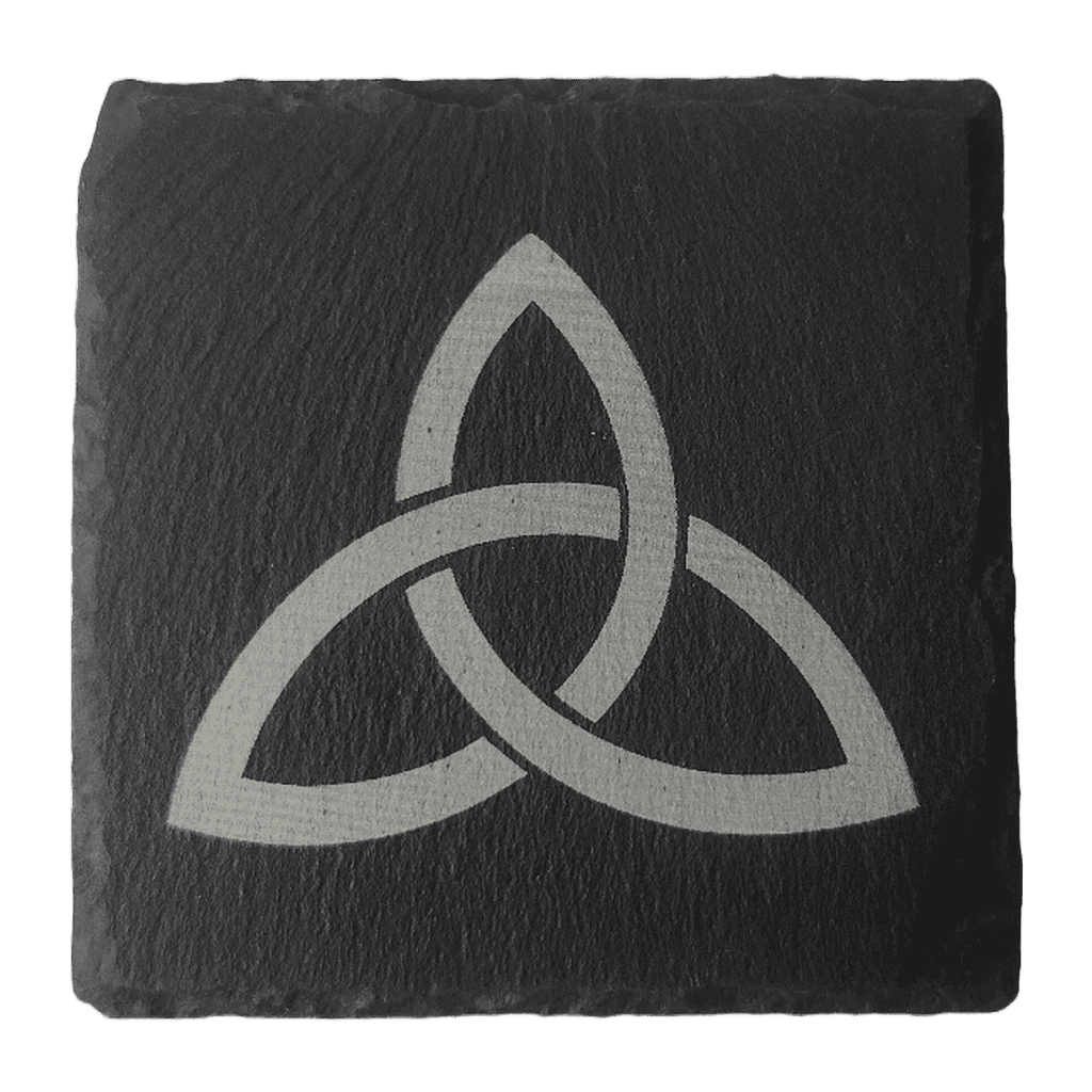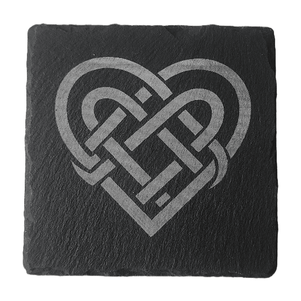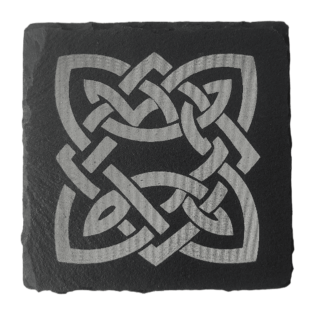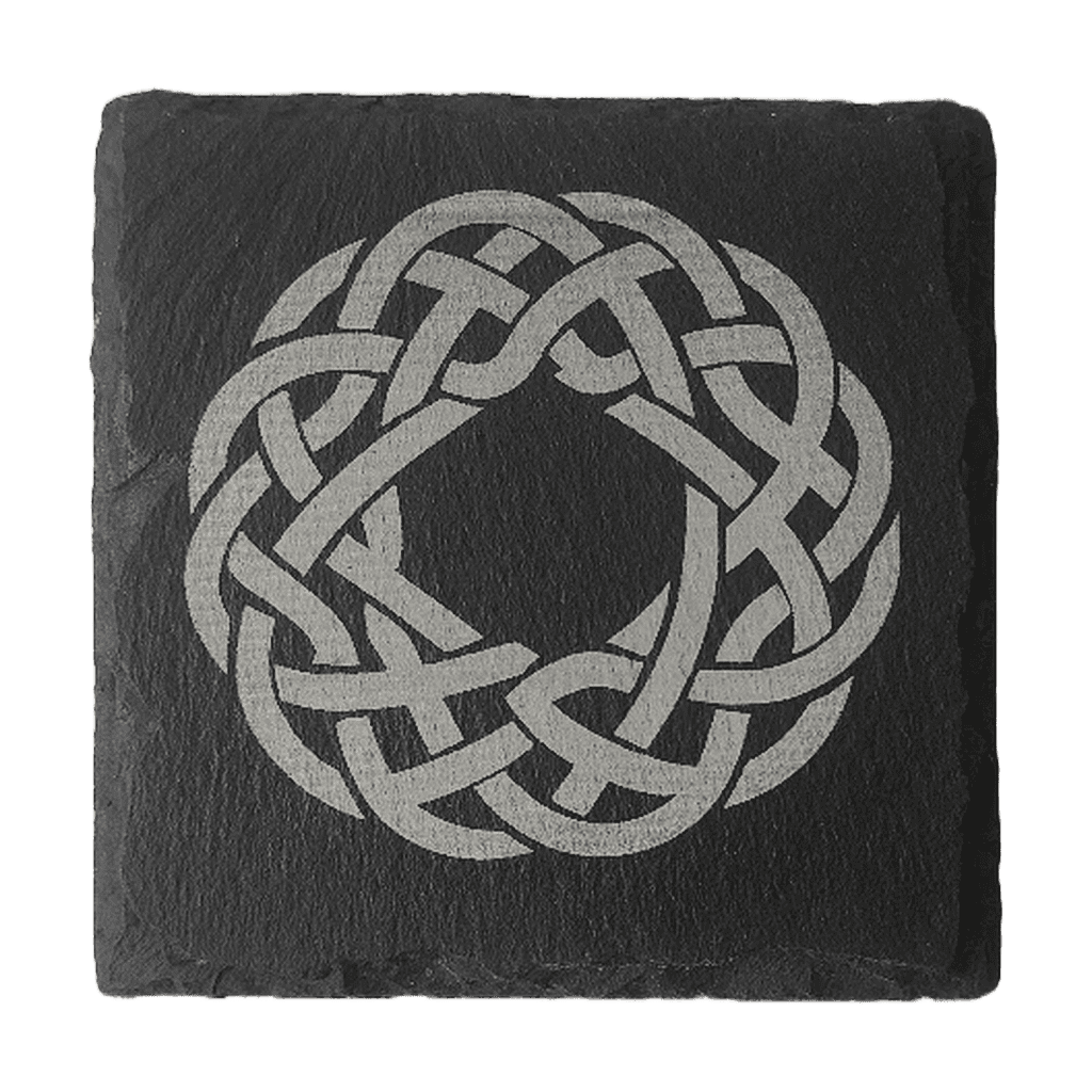 Featuring intricately engraved traditional Celtic knot designs, each coaster represents eternity, unity, and interconnectedness — powerful symbols rooted in ancient Irish culture. The detailed laser engraving contrasts beautifully against the natural texture of genuine slate, creating a striking yet understated finish.