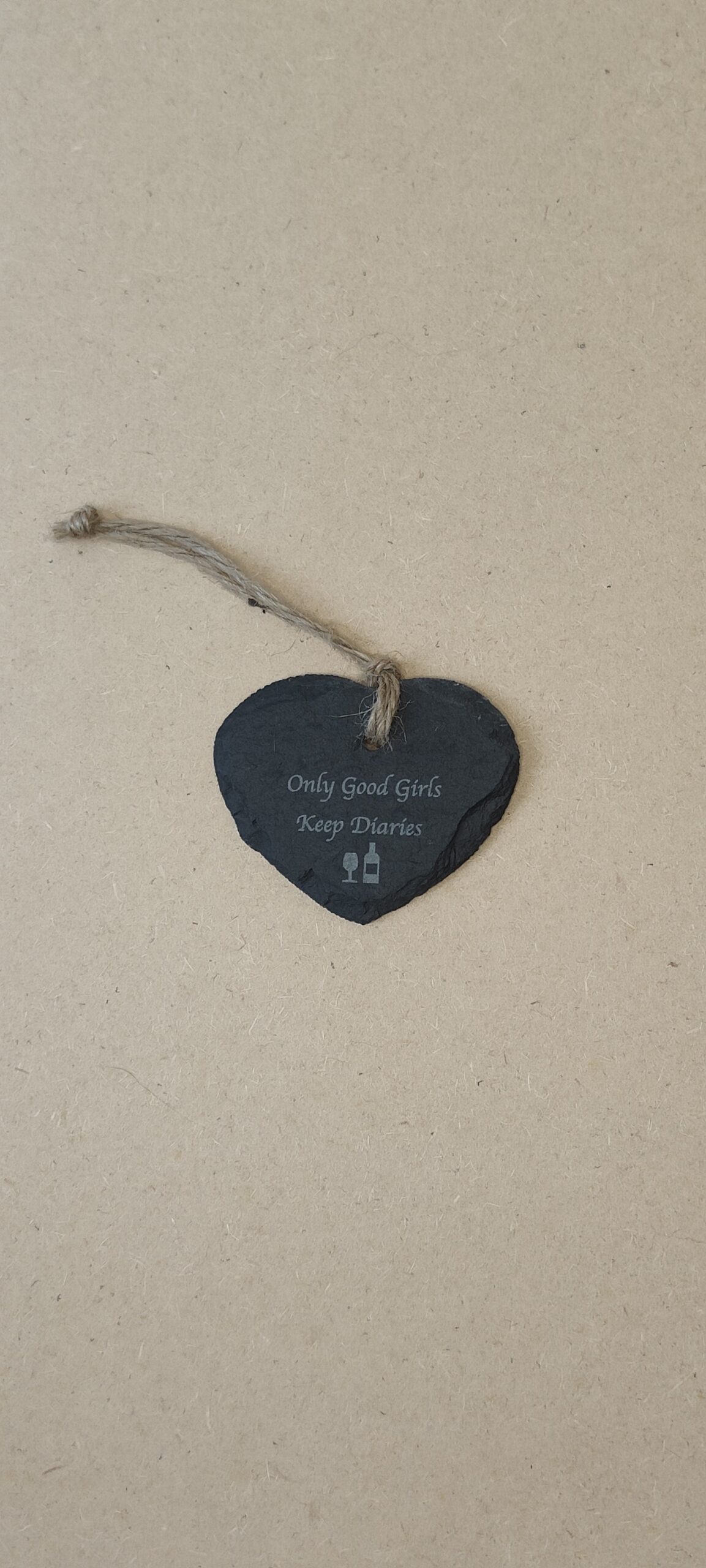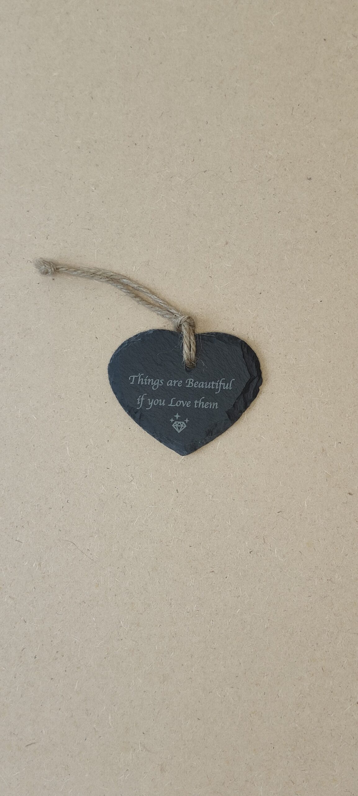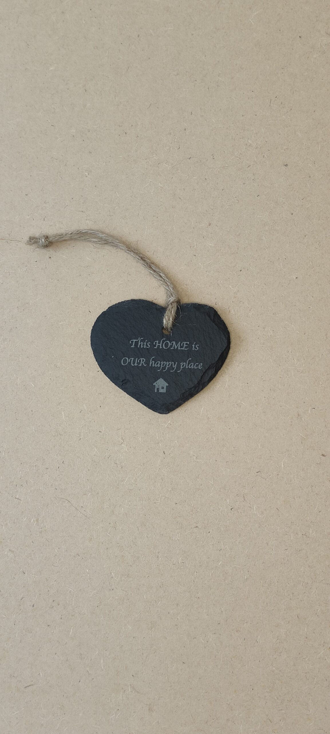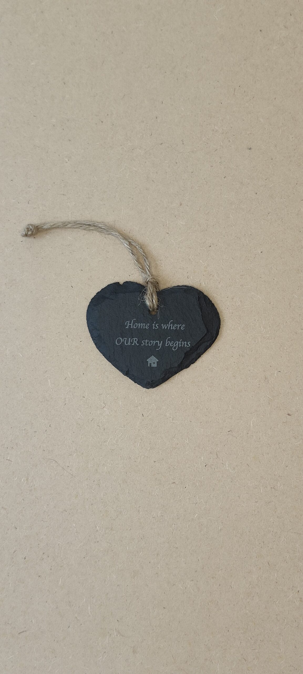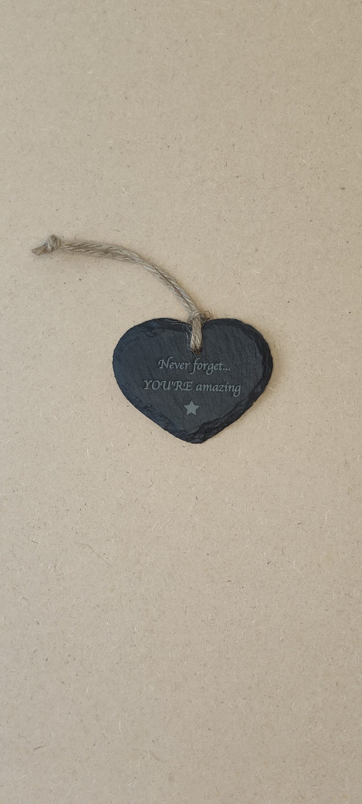 This small hanging heart features a handcrafted design made from natural slate, paired with an inspirational message to uplift any space. Its durable material and elegant finish make it a charming decorative piece for your home or a thoughtful gift.