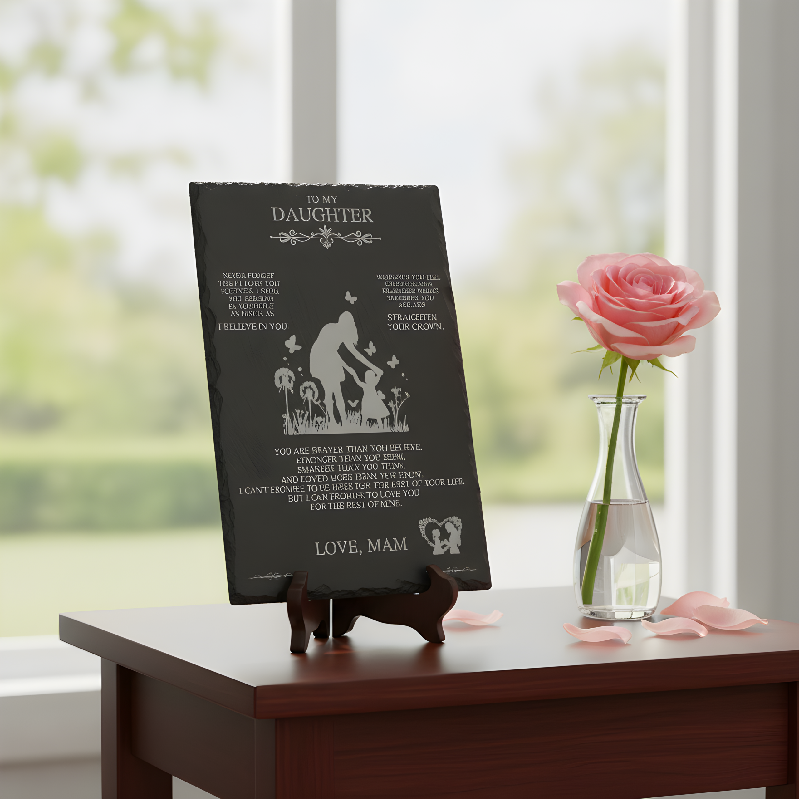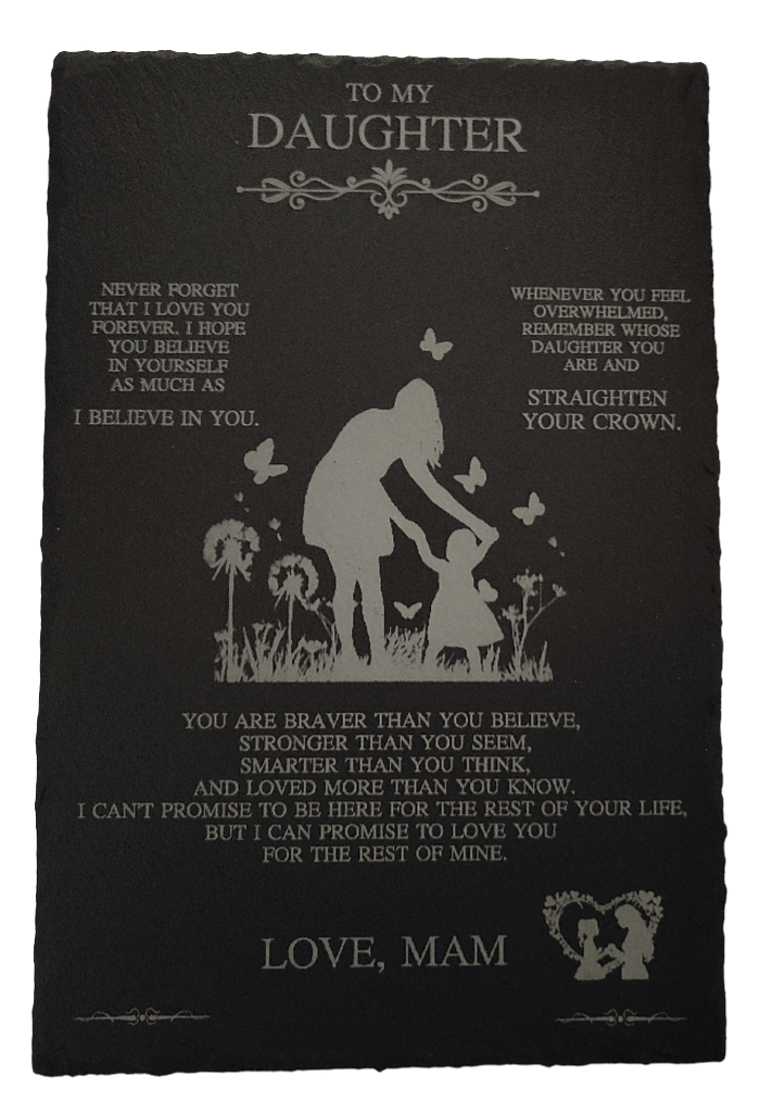 This natural slate plaque features a heartfelt message, offering inspiring lessons and a timeless tribute to your daughter. Crafted for durability, it makes a meaningful keepsake for any special occasion.