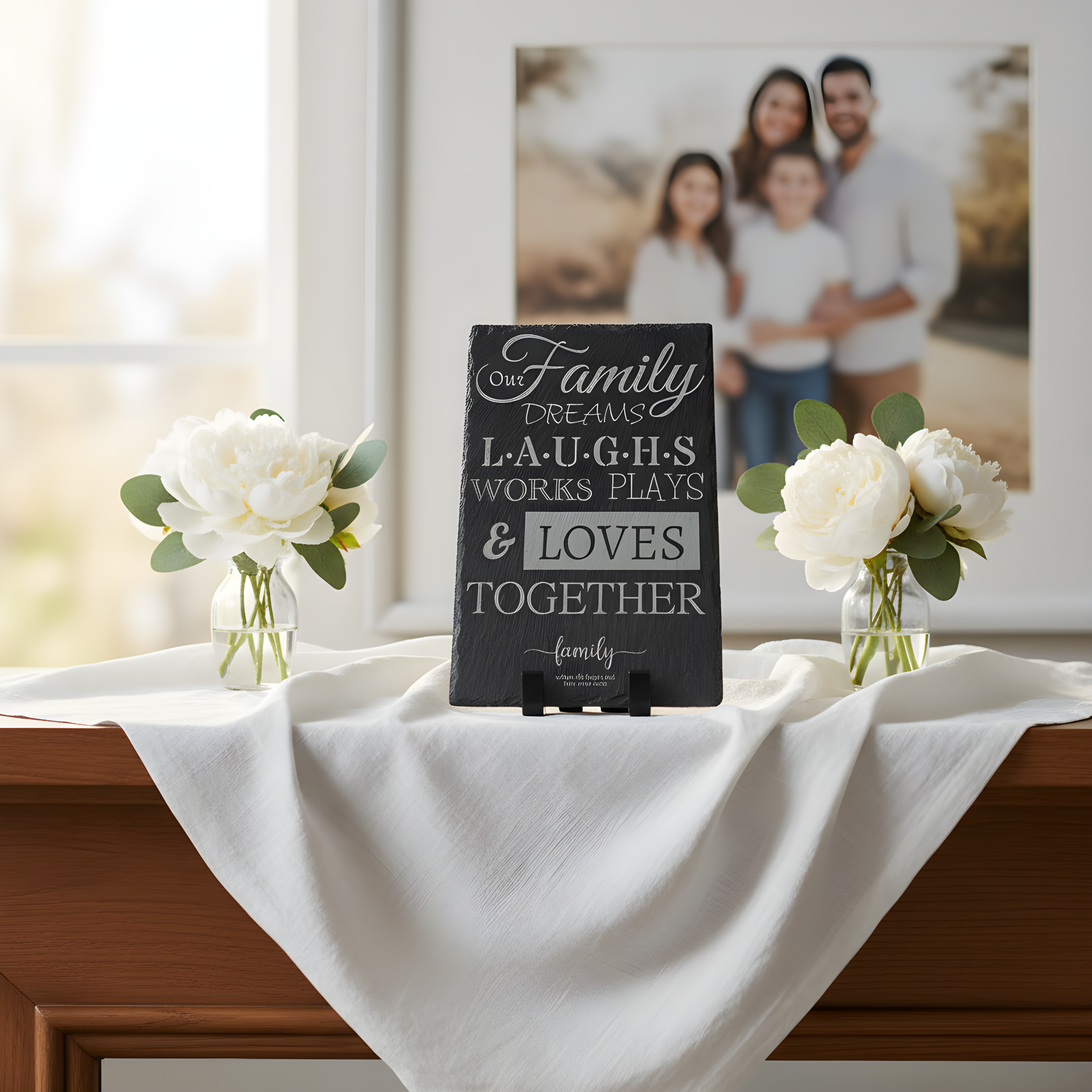 Celebrate what matters most with this beautifully handcrafted Our Family slate plaque — a timeless piece designed to honour the heart of every home.