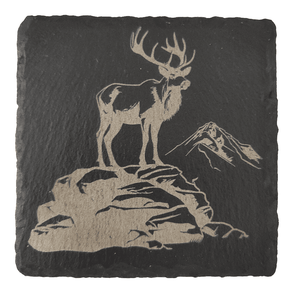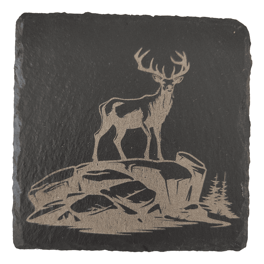 The Deer coaster set features a set of coasters crafted from durable natural slate, offering a rustic and elegant look.