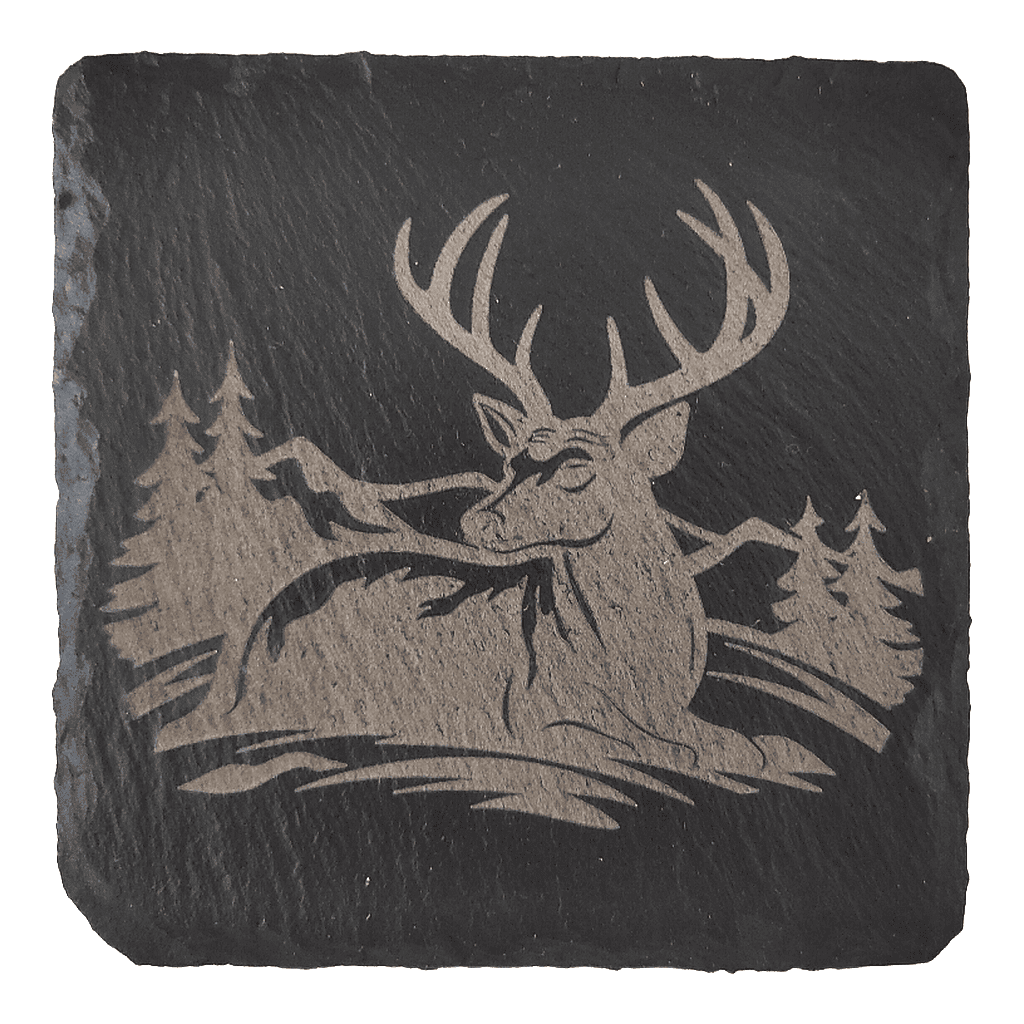 The Deer coaster set features a set of coasters crafted from durable natural slate, offering a rustic and elegant look. Each coaster showcases a deer design, making it a perfect addition to nature-inspired or cabin-style decor. Designed to protect surfaces, these coasters are both functional and visually appealing, ensuring long-lasting use.