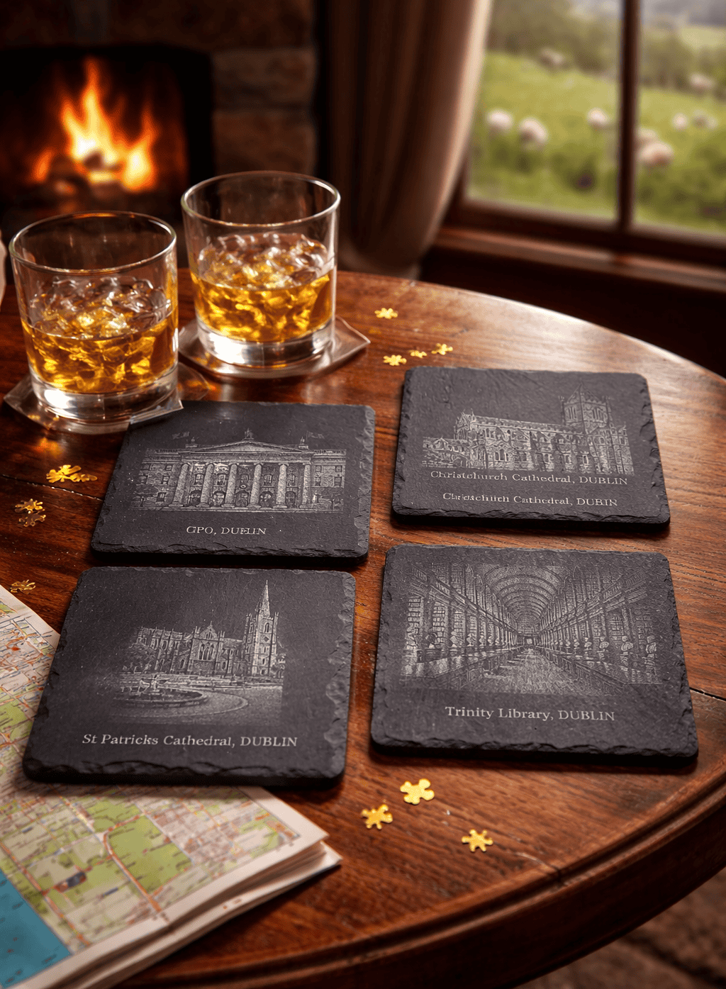 Celebrate Dublin’s rich heritage with this Famous Dublin Landmarks Coaster Set. Crafted from natural slate, each coaster showcases detailed engravings of iconic landmarks, making it both functional and decorative. Perfect as a souvenir or a thoughtful gift, this set highlights exceptional craftsmanship while preserving the charm of Ireland’s capital city.